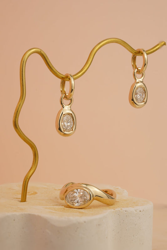 Solid gold tiny oval earring charms (pair) - Made To Order