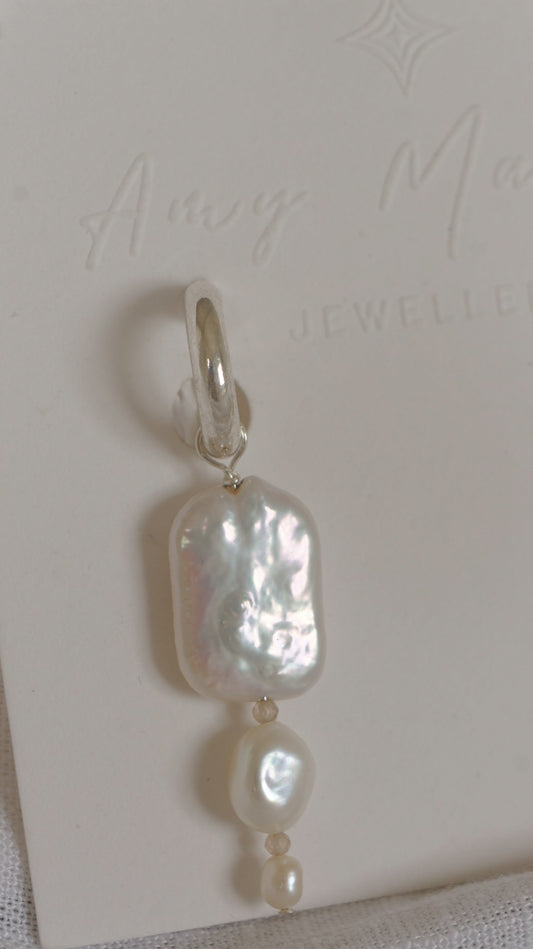 Triple drop pearl & zircon earrings (pair) - silver