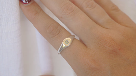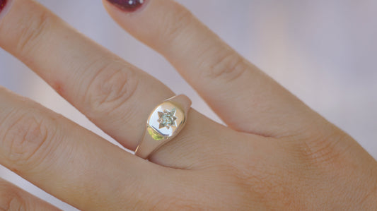 Hexagon signet with Australian zircon - silver