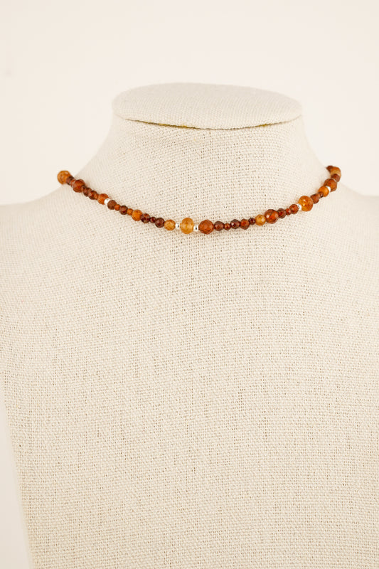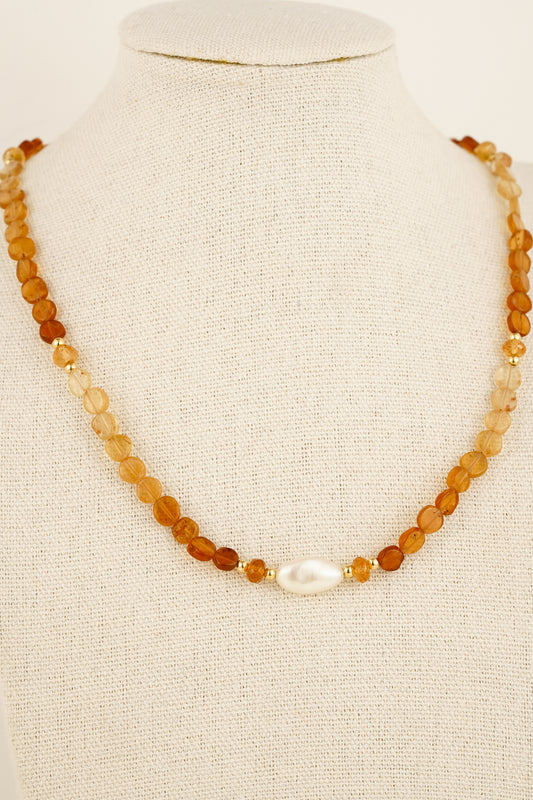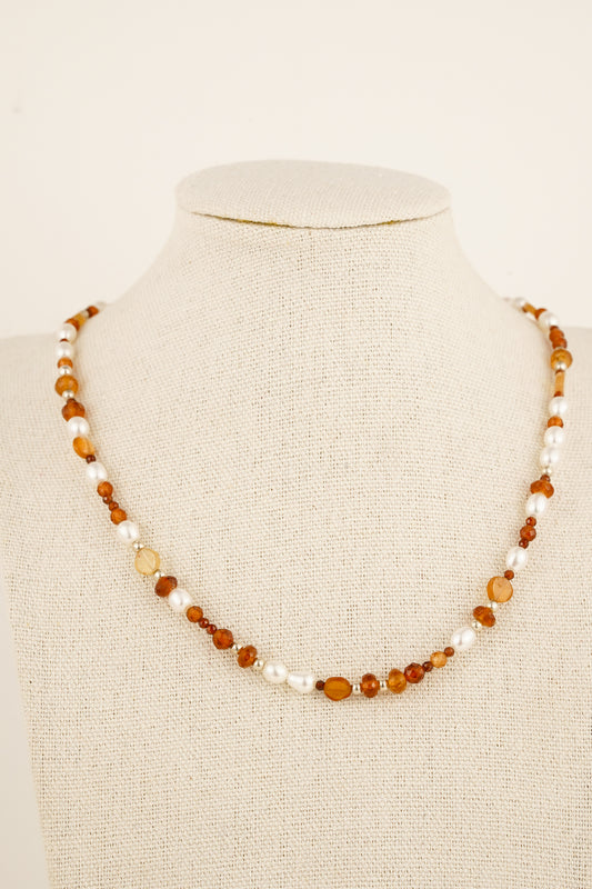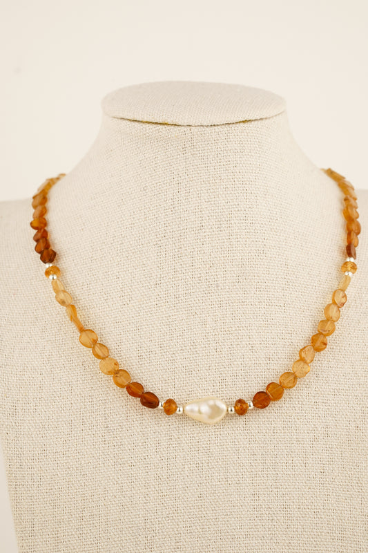 Champagne zircon beaded necklace with pearl centrepiece - silver