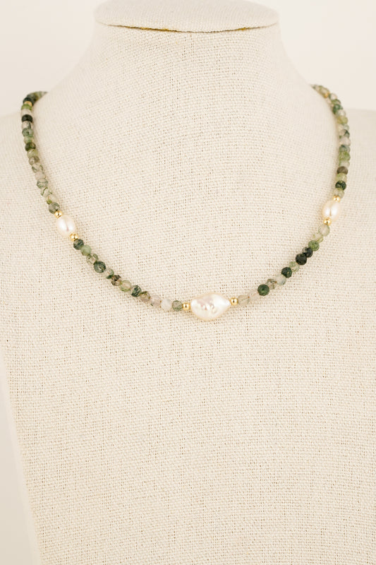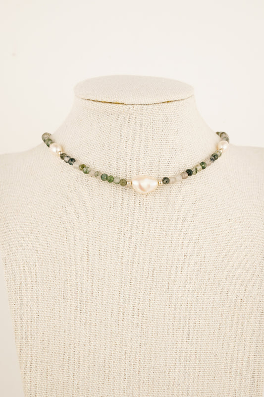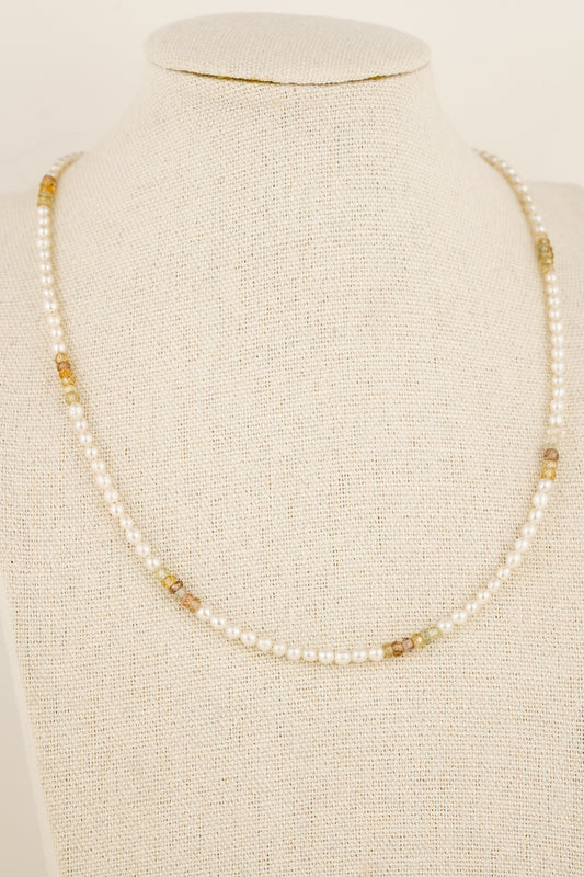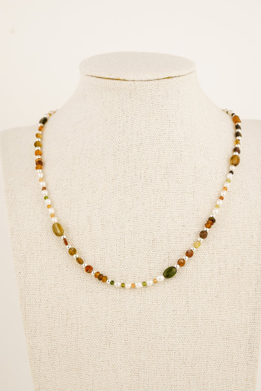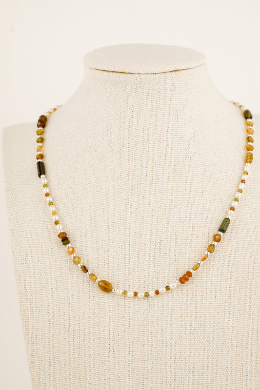 Pearl & petro tourmaline beaded necklace - silver mix 1