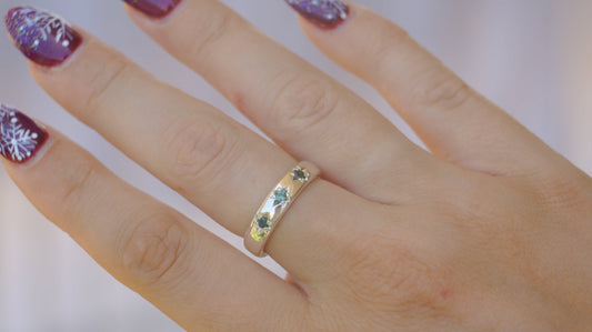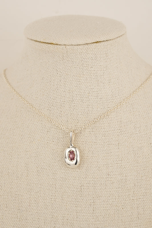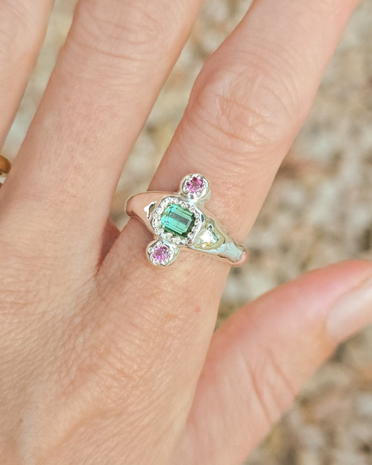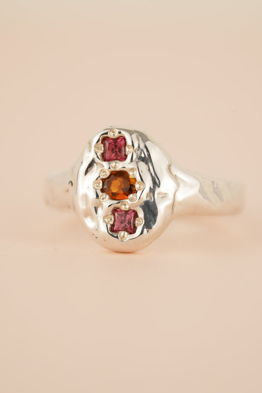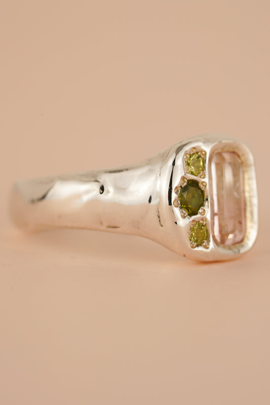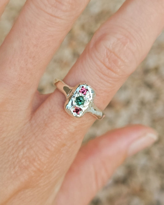 Molten signet with teal tourmaline & rhodolite garnet - silver
