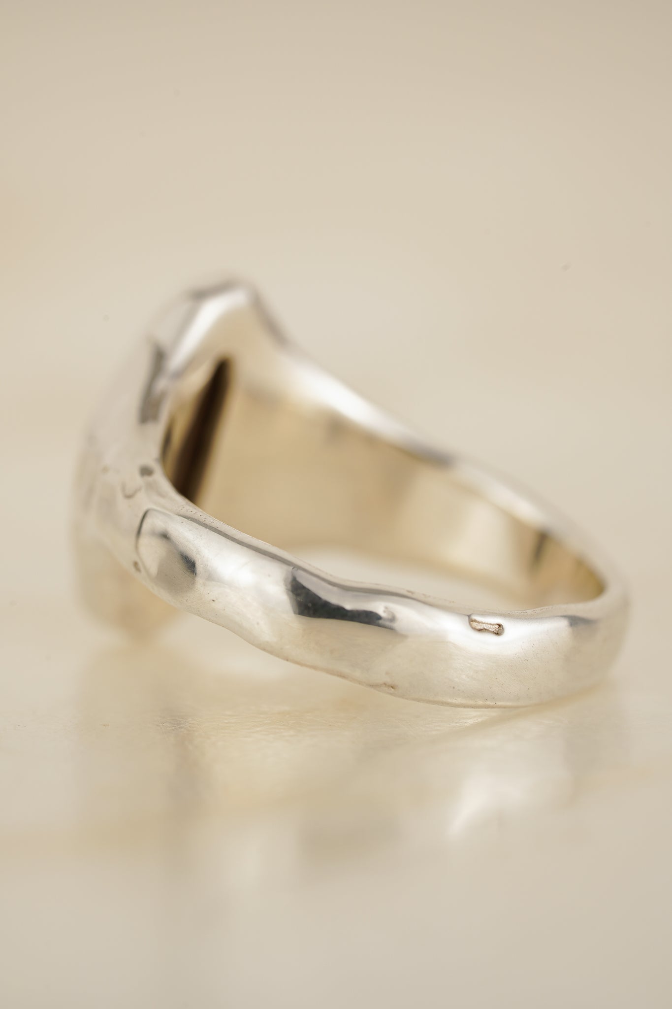 This ring features a bright blue Australian boulder opal, in a smooth bezel setting. The ring has great finger coverage and is perfect for those wanting more of a statement opal ring. The band has a soft molten texture.