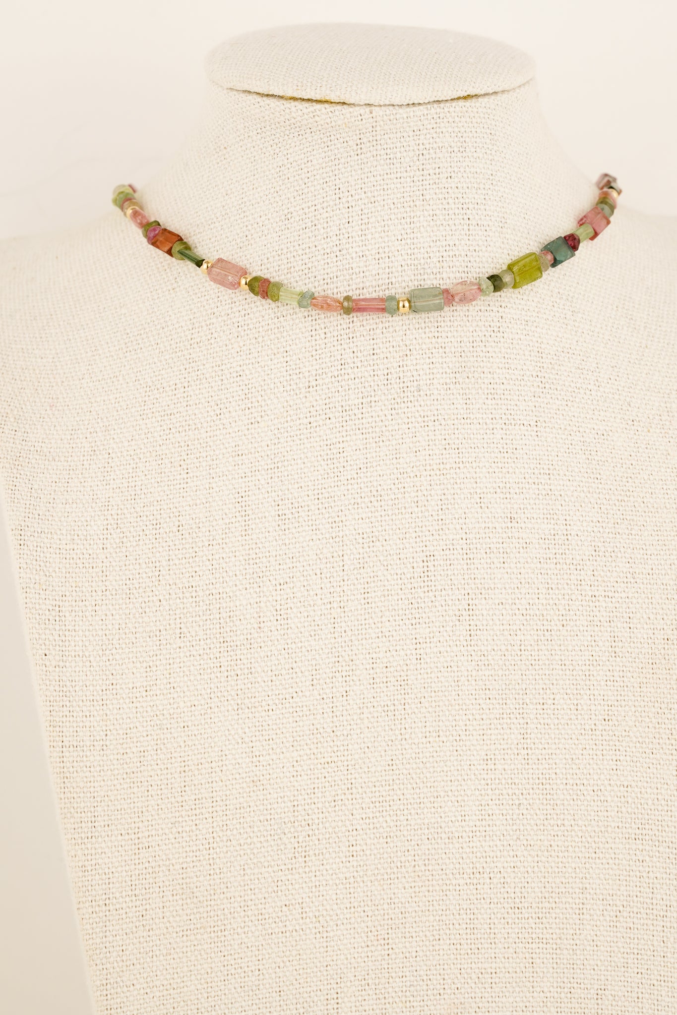 This beaded necklace features a mix of natural tourmaline beads in various colours, shapes and sizes. Pairs perfectly with gold chains and pendants containing opal and tourmaline.
