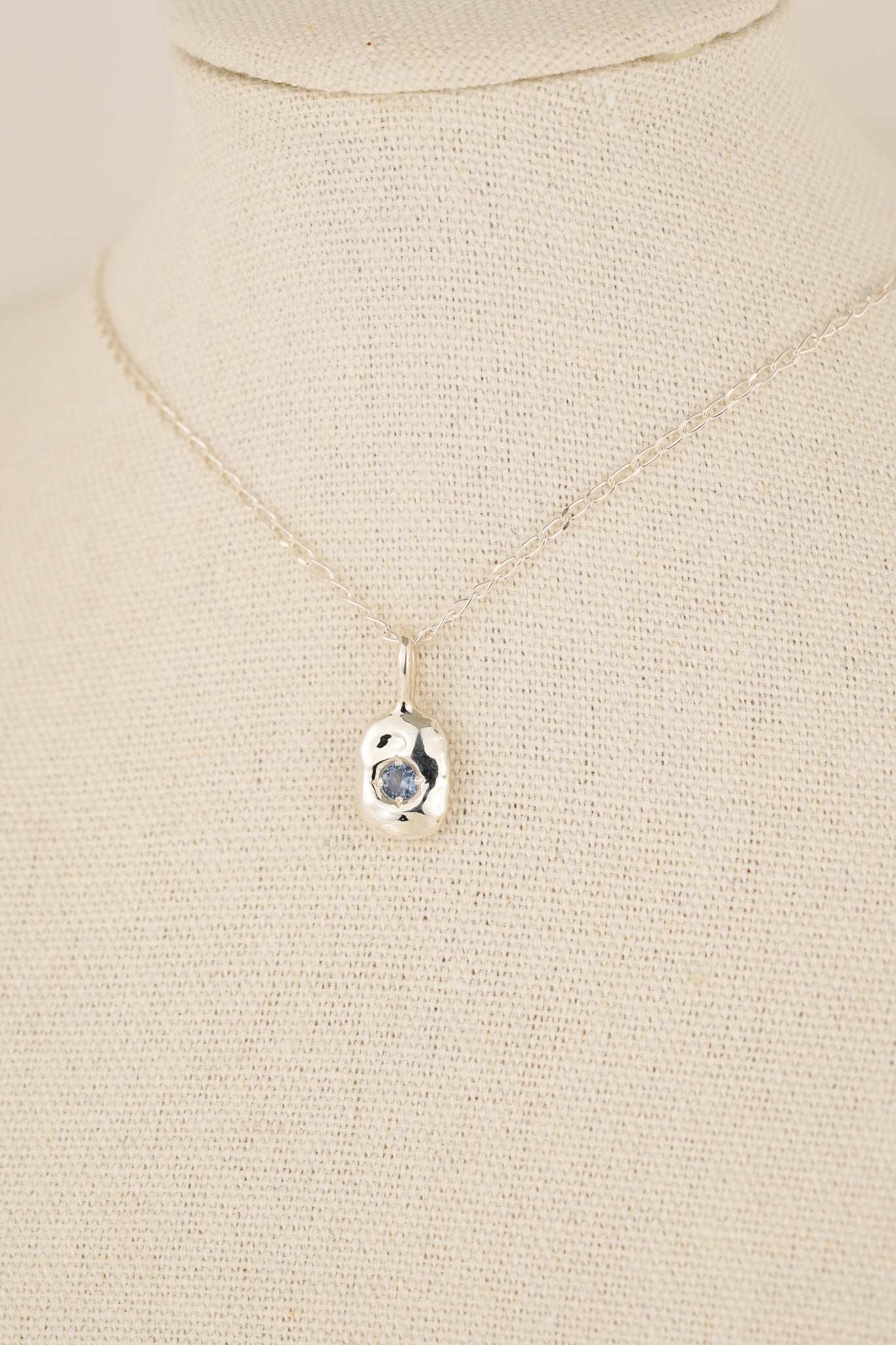 This pendant features a gorgeous soft molten texture and a bright mid-blue Australian sapphire. Perfect for layering with the mixed peridot and blue iolite beaded necklaces.