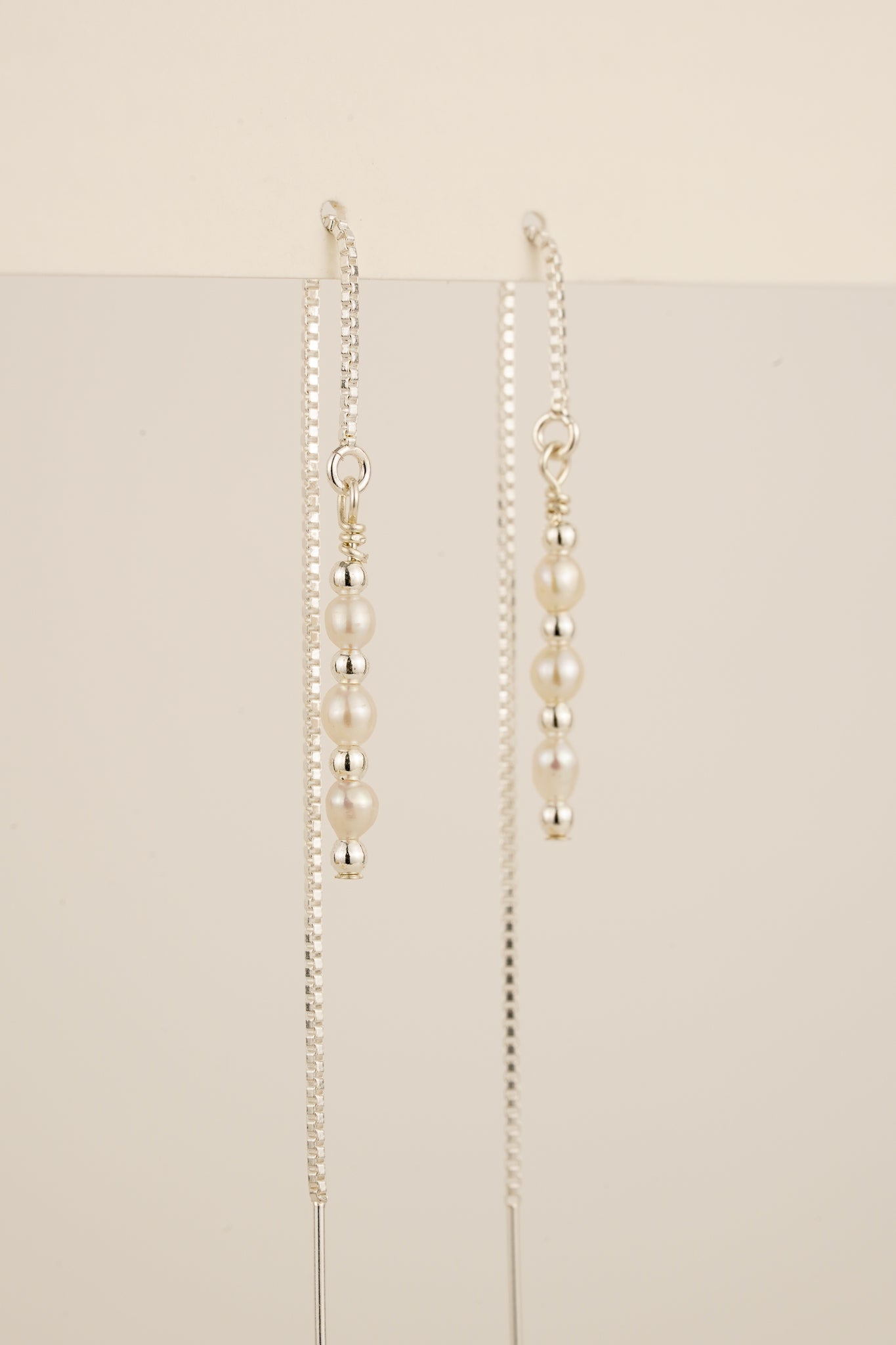 Pearl threader earrings - silver