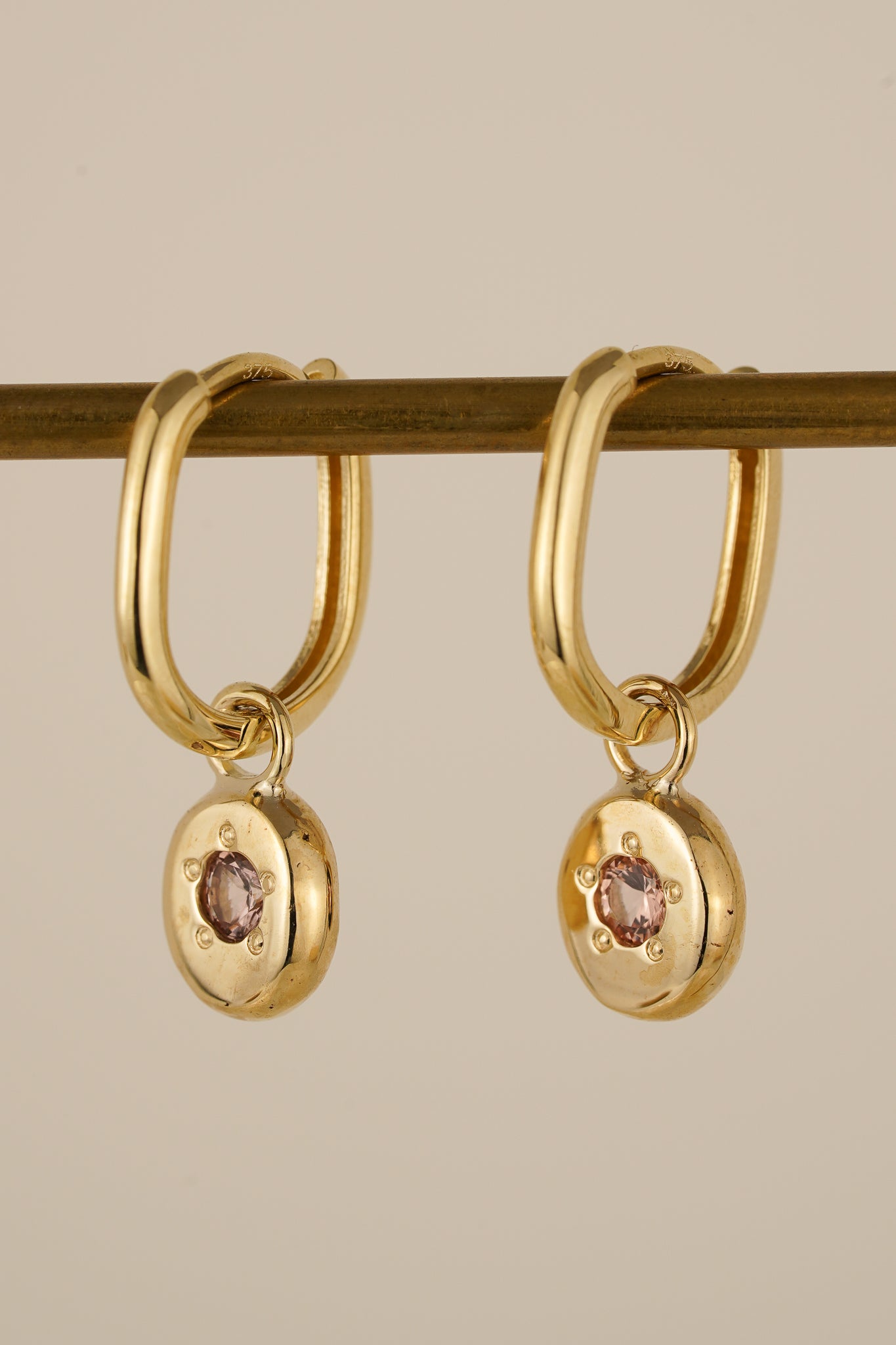 These organic shaped earring charms feature stunning peach sapphires. Each charm is a slightly different organic shape.