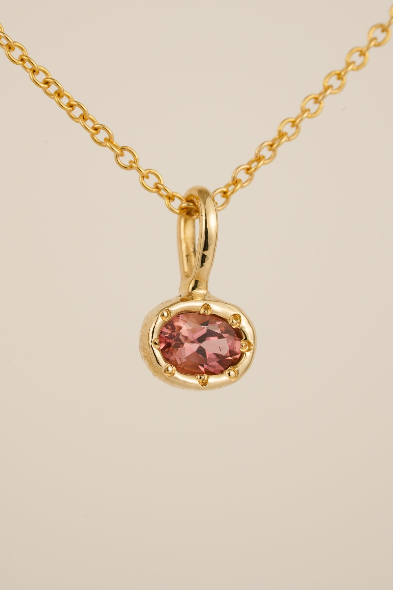 Solid gold pink tourmaline pendant